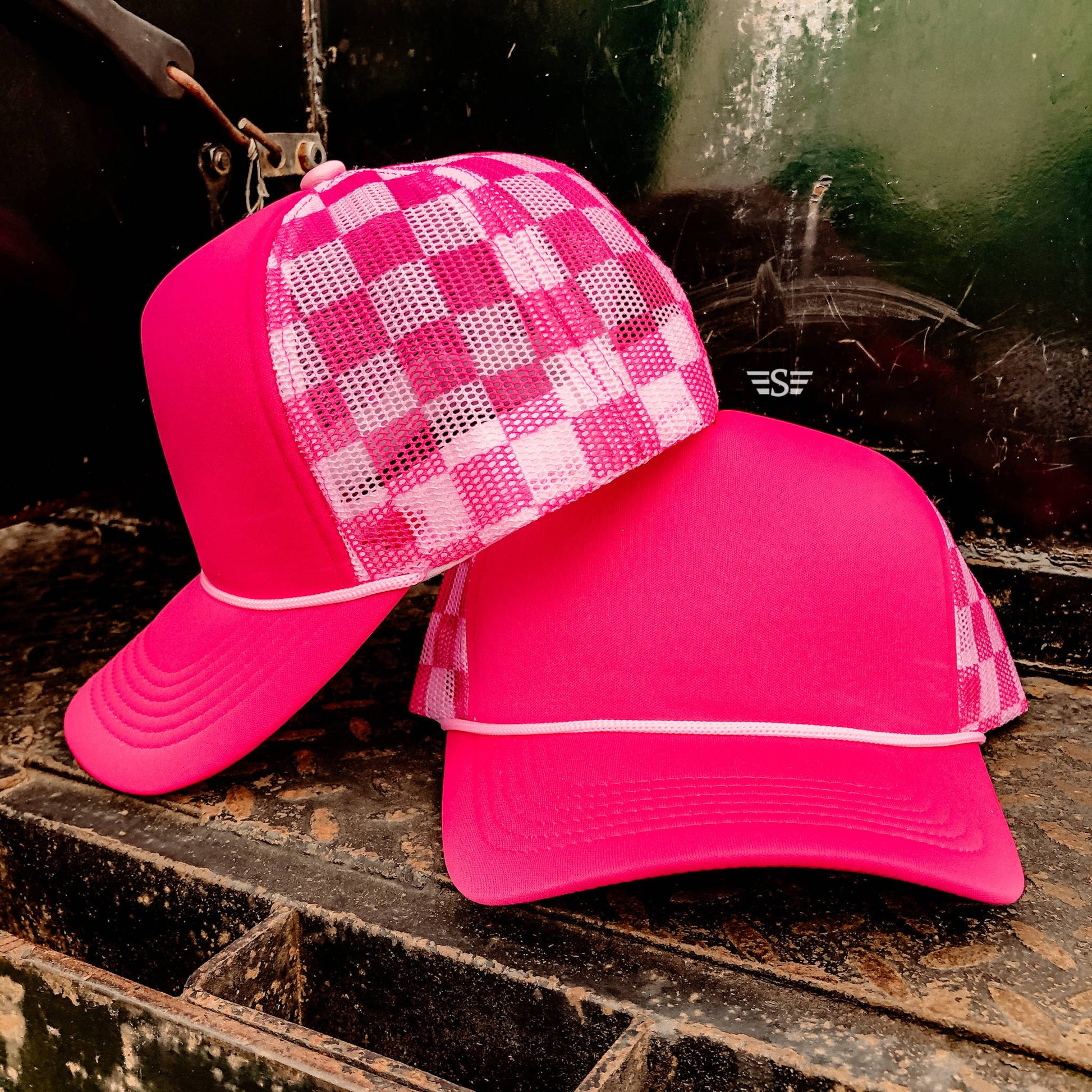 Checkered Mesh Back Foam Trucker Cap: Black/ White
